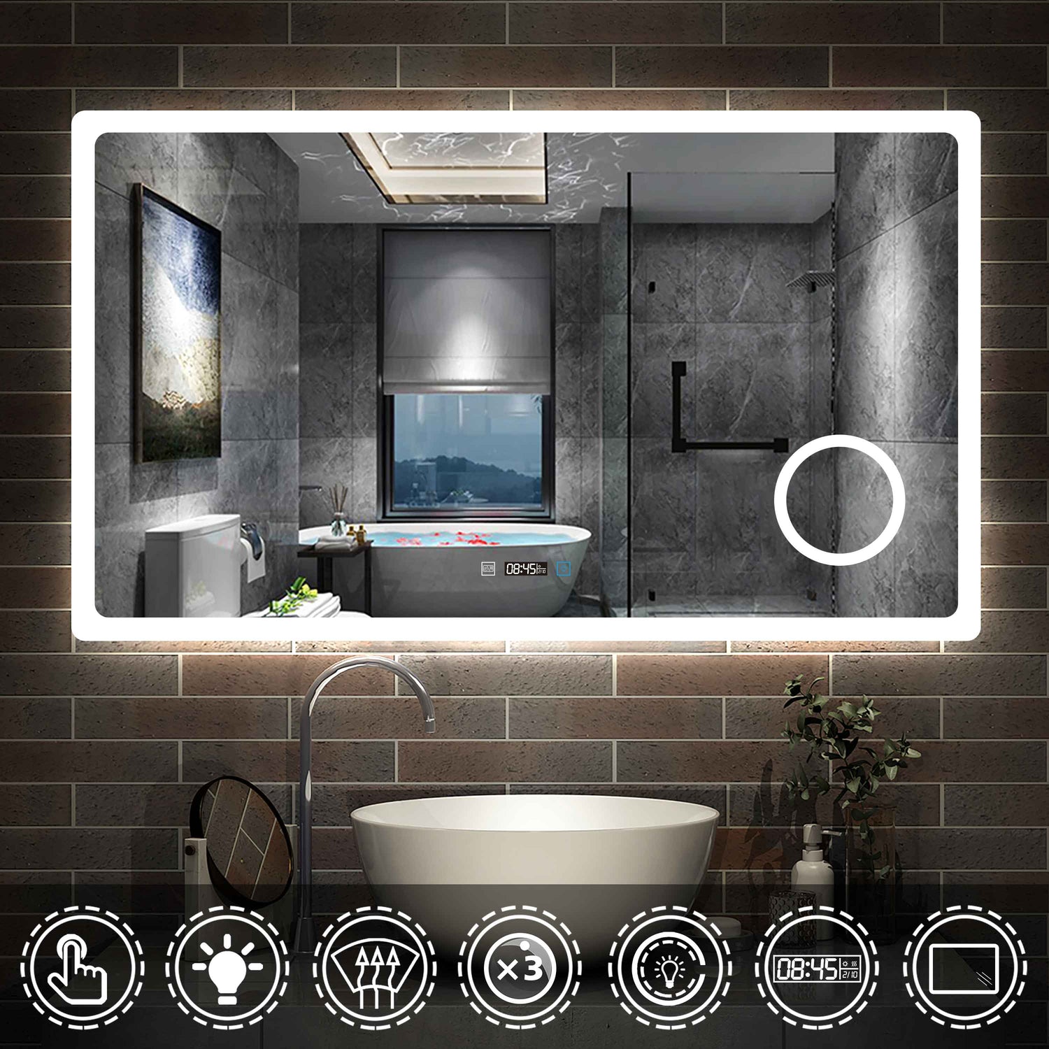 Modern Splash 1000*700mm adjustable brightness Led Mirror with Anti-fogging