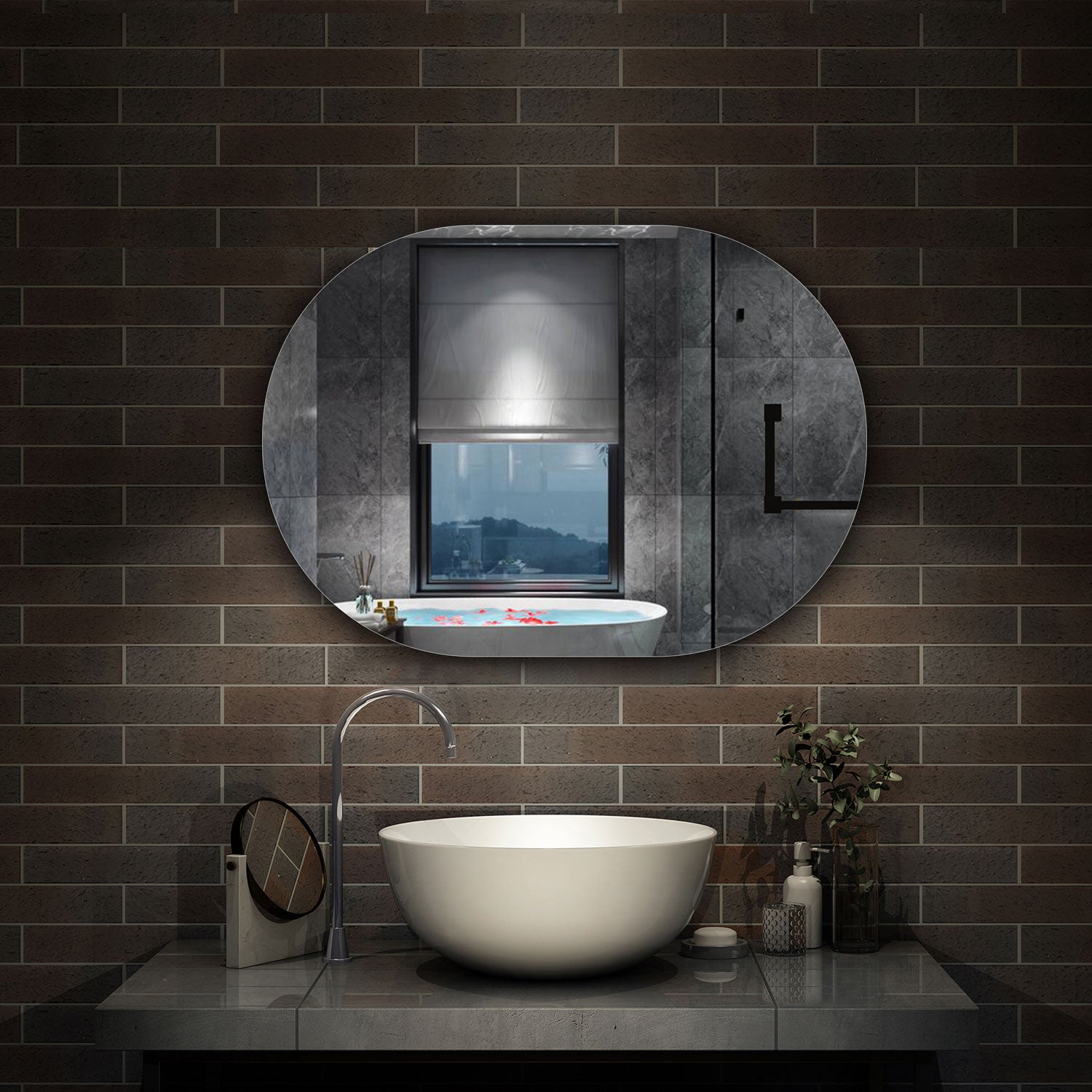 Push boundaries with this audacious 500*700 round illuminated mirror that refuses to play it safe. Anti-fog technology keeps your reflection razor-sharp through the steamiest showers, eliminating the tedious wipe-down ritual. Paired with integrated lighting that cuts through bathroom shadows, this mirror doesn't just reflect it commands your space. Bold geometry meets uncompromising functionality in a piece that elevates your daily routine from mundane to unforgettable.