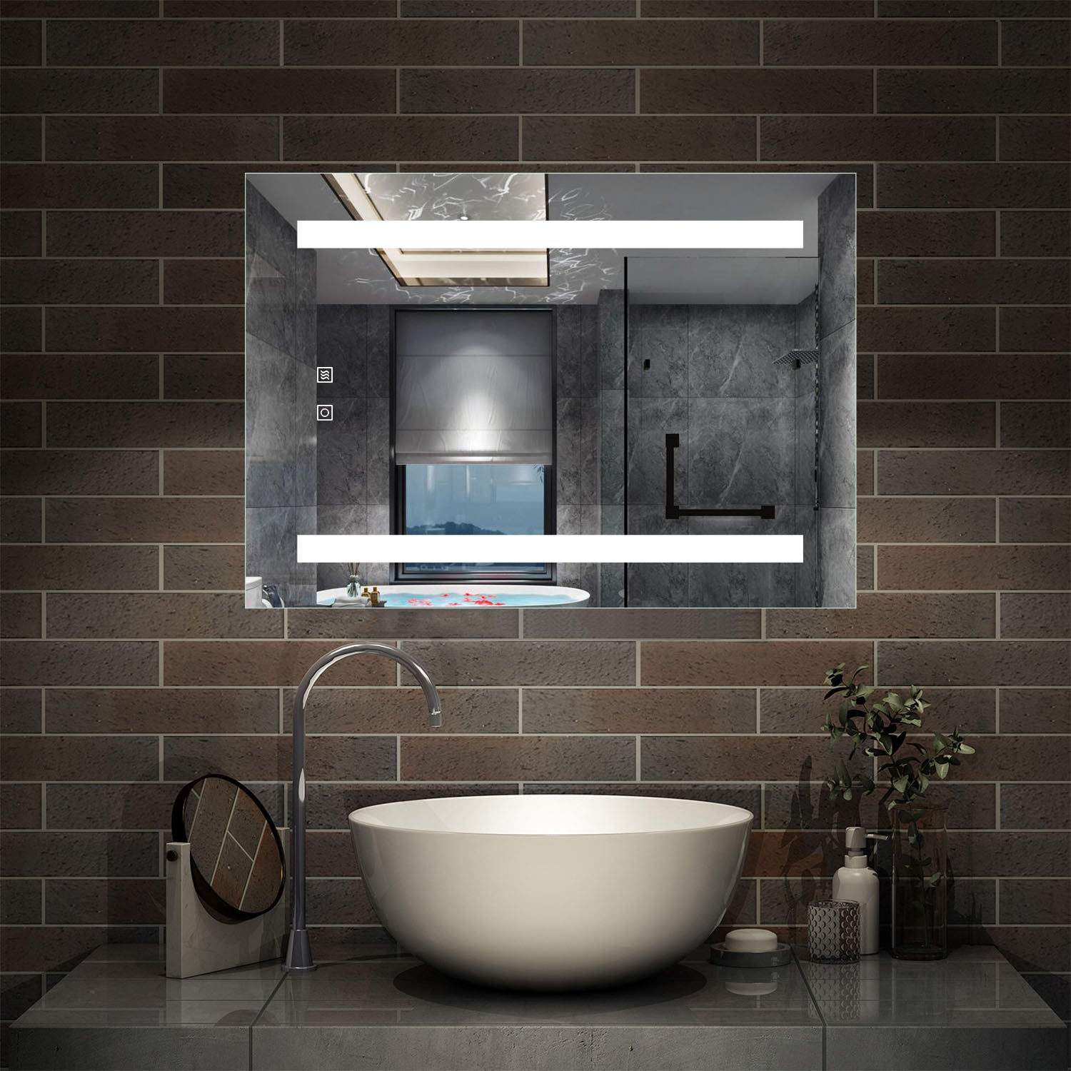 - Infrared Sensor Switch (Motion sensor ON/OFF switch - keeps the mirror smudge and fingerprint-free)