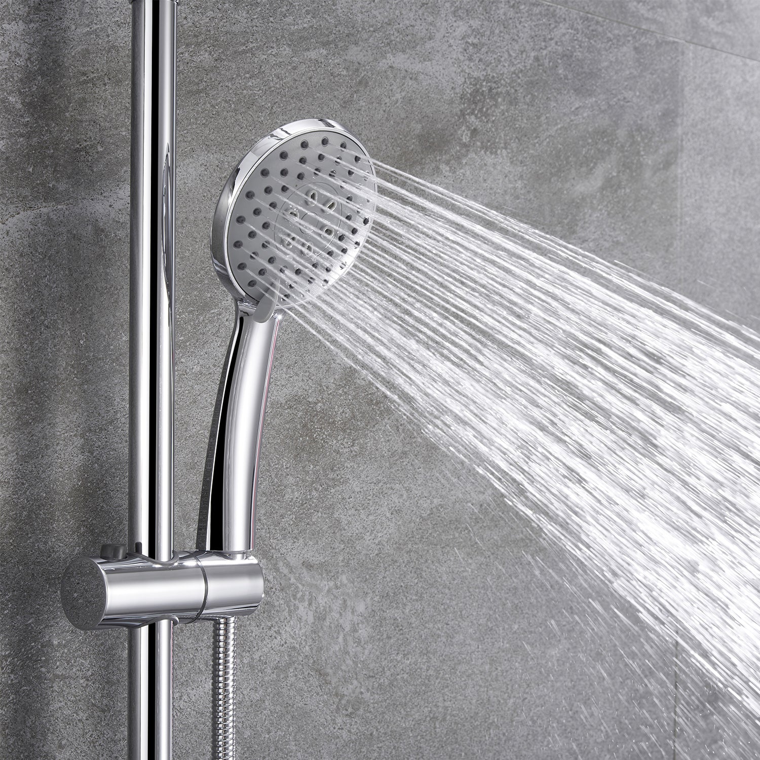 Exposed Square Thermostatic Shower Mixer Set with Flexible Stainless steel Top Spray and Handheld Shower, Chrome Square Bar.