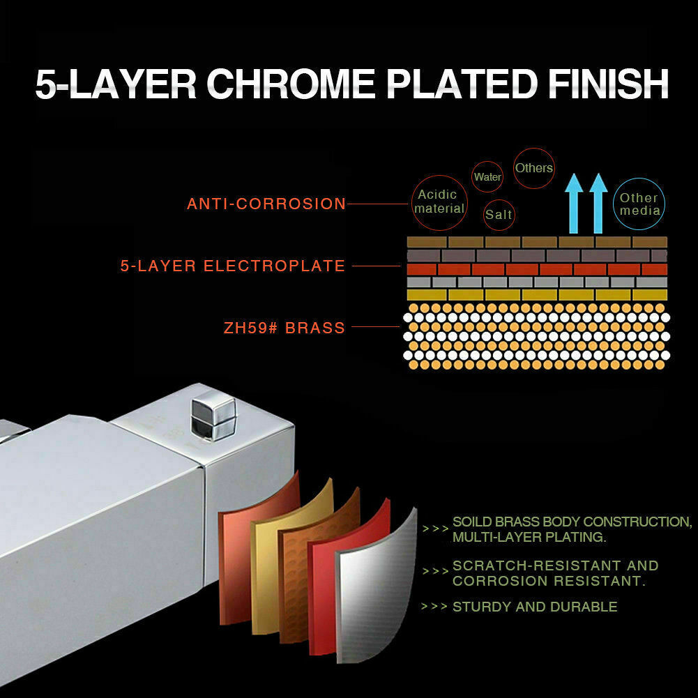 【Thickened Brass Construction】Shower system set use copper body the surface of the multi-stage process 10 electroplating treatment, with the function of resistance to high pressure, high temperature, anti-rust,pressure resistance is not easy to burst, tested to withstand 100,000 times the spool temperature control, shower system provides constant water flow to protect the whole family comfortable and safe water.