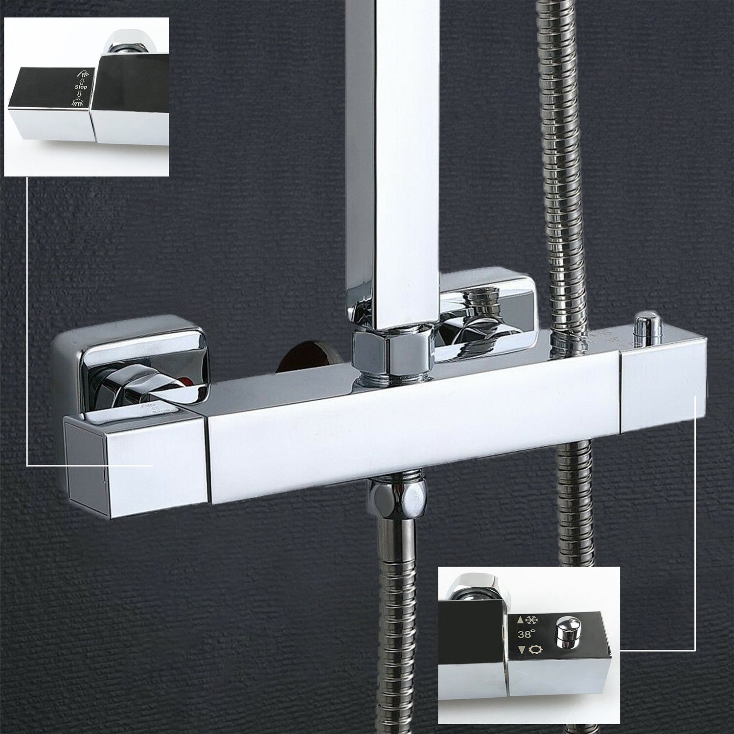 Modern Splash NEW Bathroom Thermostatic Shower Mixer Overhead Rainfall Shower Head Set