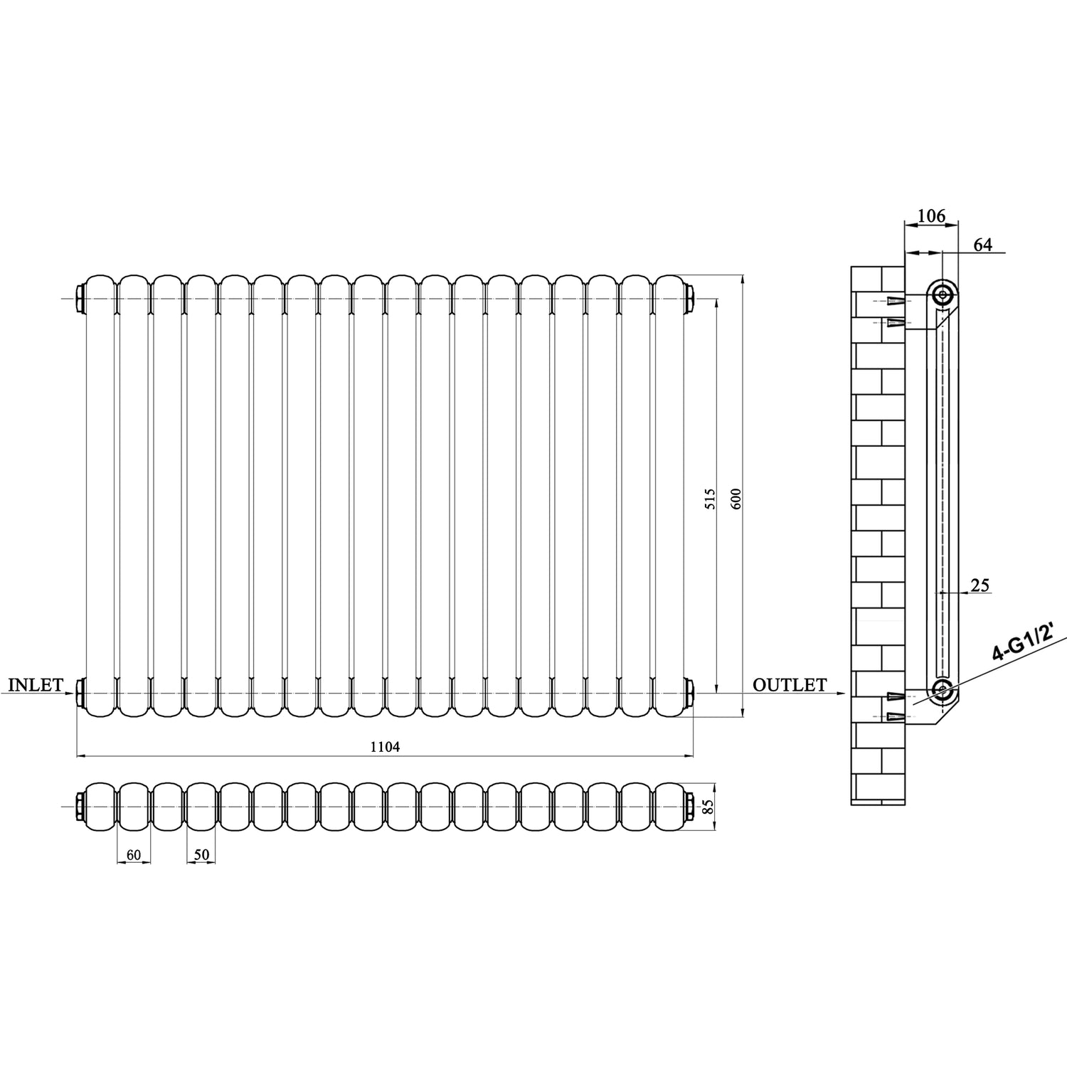 Engineered for impact, this anthracite cast iron radiator combines functional excellence with striking visual presence. The round-tube construction delivers efficient heat distribution across its substantial 600x1104mm frame, while the horizontal orientation transforms it into a defining design element. Dual-panel architecture ensures robust thermal performance, making it equally at home in contemporary minimalist interiors or industrial-inspired spaces. A radiator that performs with the same conviction it displays.