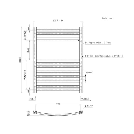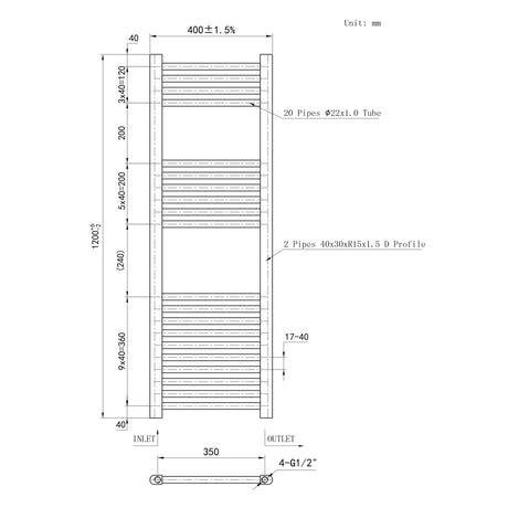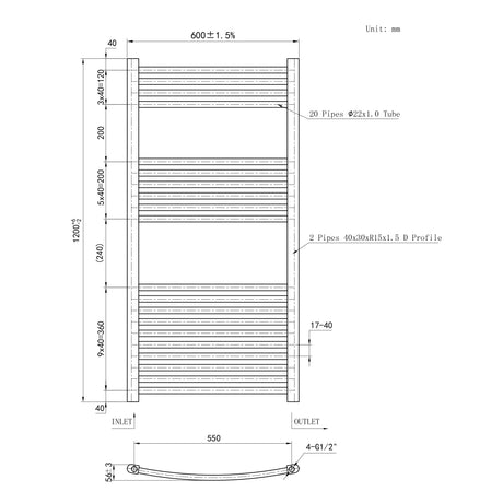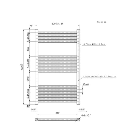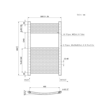 1200*450mm Bathroom Chrome towel radiator