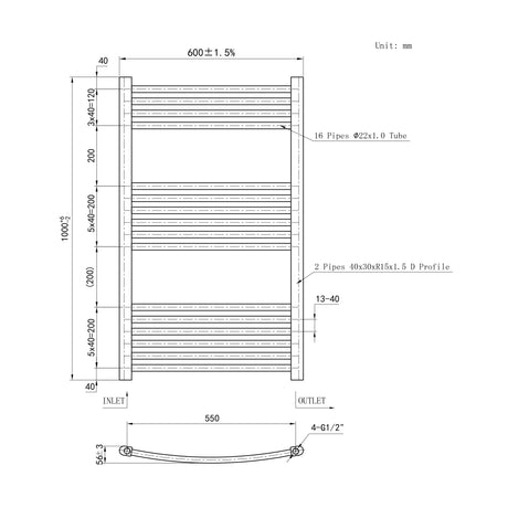 Chrome Bathroom Central Heating Towel Rail Curved Designer Ladder Radiator Warmer