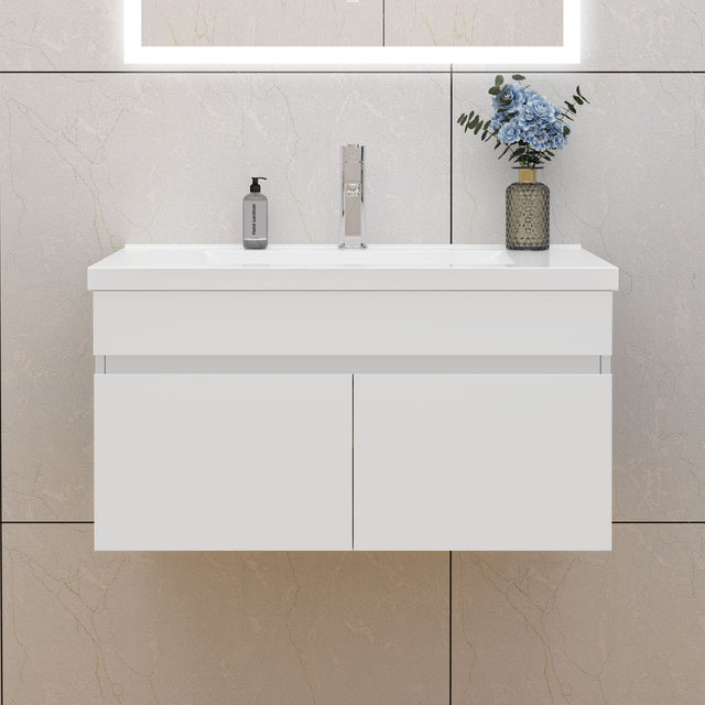 Modern Splash Mat White Wall-Mounted Bathroom Vanity Unit With Basin Double Doors 790*450*400mm