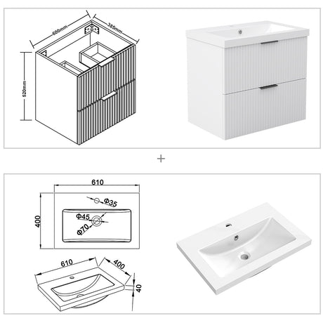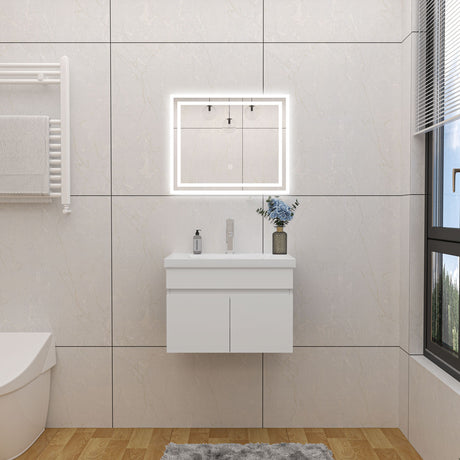 Modern Splash Mat White Wall-Mounted Bathroom Vanity Unit With Basin Double Doors 590*385*400mm