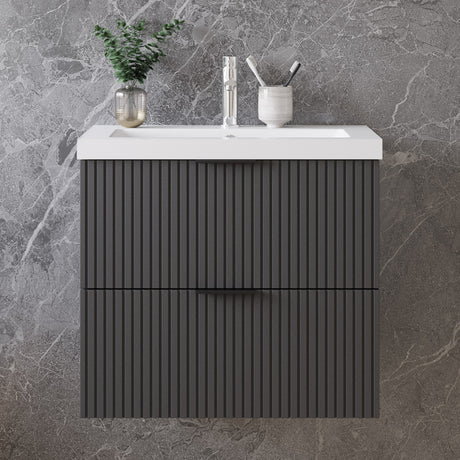 Modern Splash Mat Anthracite Wall-Mounted Bathroom Vanity Unit With Basin Double Doors 590*385*400mm