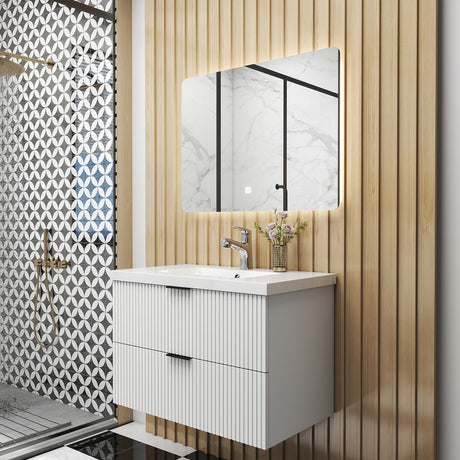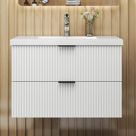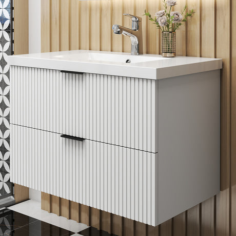 Modern Splash 800mm Wide Wall Mounted Vanity Units and Sink 2 Drawers - Matt White