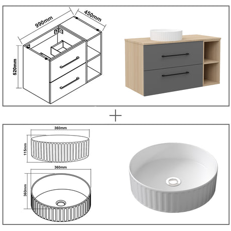 Modern Splash Anthracite Bathroom Vanity With Basin And 3 Soft Close Drawers 600*385*850mm
