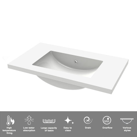 Modern Splash White Bathroom Vanity With Square Basin And 3 Soft Close Drawers 600*385*850mm