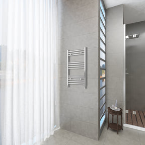 This chrome vertical bathroom towel radiator combines sleek design with efficient heating performance. Its tall, vertical structure maximizes wall space, providing ample room to warm and dry multiple towels simultaneously. Crafted with durable materials and a polished chrome finish, it offers both longevity and a modern aesthetic, making it an ideal addition to contemporary bathrooms seeking effective warmth and style.